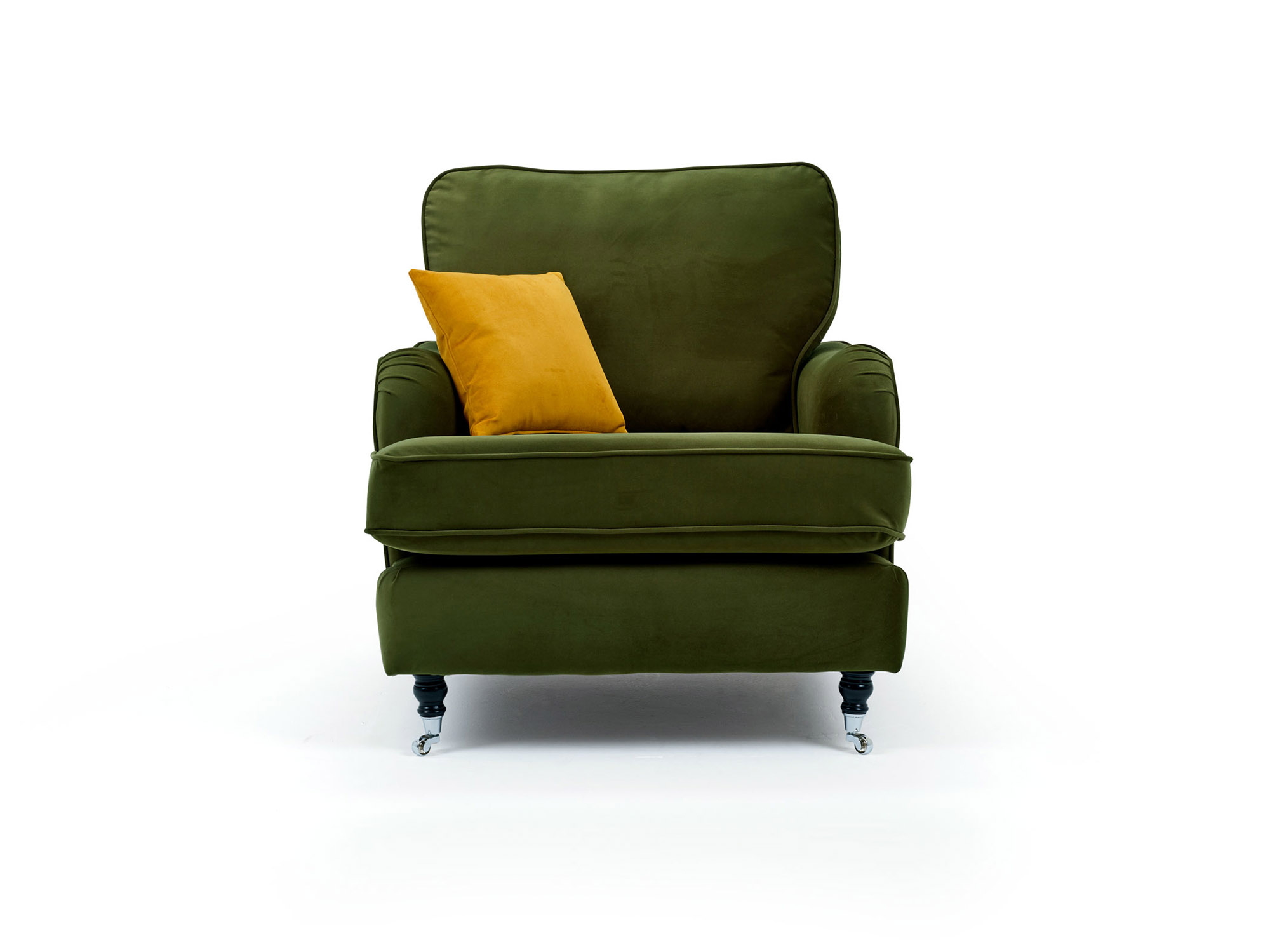 The Abigail range with its overstuffed cushions in combination with its pintuked arms gives the Abigail a sumptuous luxurious feel. Add to that the ebonized black wooden feet with nickel effect castors. Gives you the ultimate in comfort and luxury with a supreme style that won’t break the bank.