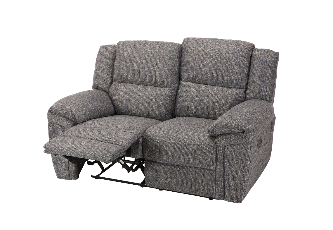 Welcome to the “Jodie” range of recliners. The lower part of the rear cushion, is designed to protrude slightly, so that it gives full lumber support, along with the padded arms, high back and generous seat area, it’s designed for ultimate comfort. The manual action is an easy to release handle, situated on the sides of the sofa. Once reclined to the raised feet position, you can easily go further back to an almost lying position, simply by using your body weight. The “Jodie” range is covered in a luxurious warm, wool, synthetic mix, hard wearing tweed fabric. Made up of black and white fibres, making it look grey in appearance.