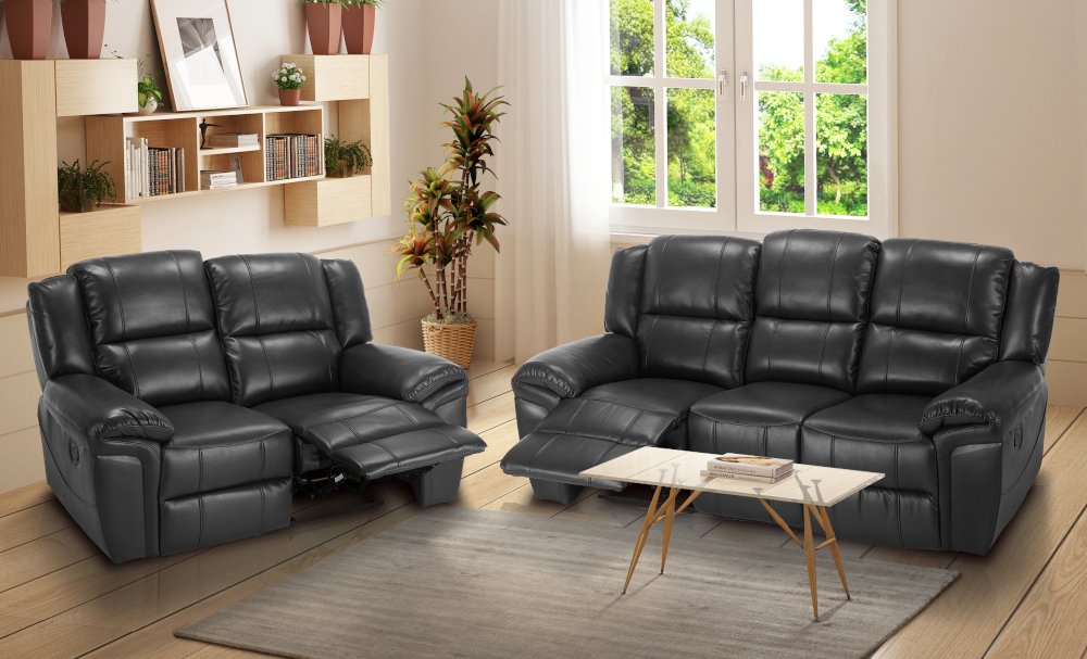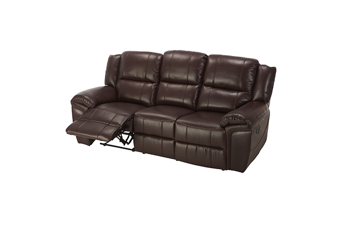 Welcome to the “Jodie” range of recliners. The lower part of the rear cushion, is designed to protrude slightly, so that it gives full lumber support, along with the padded arms, high back and generous seat area, it’s designed for ultimate comfort. The manual action is an easy to release handle, situated on the sides of the sofa. Once reclined to the raised feet position, you can easily go further back to an almost lying position, simply by using your body weight. The “Jodie “ range is covered in a hard wearing synthetic leather, in a choice of brown or black. Easy clean surface that makes it ideal for families with children and pets.