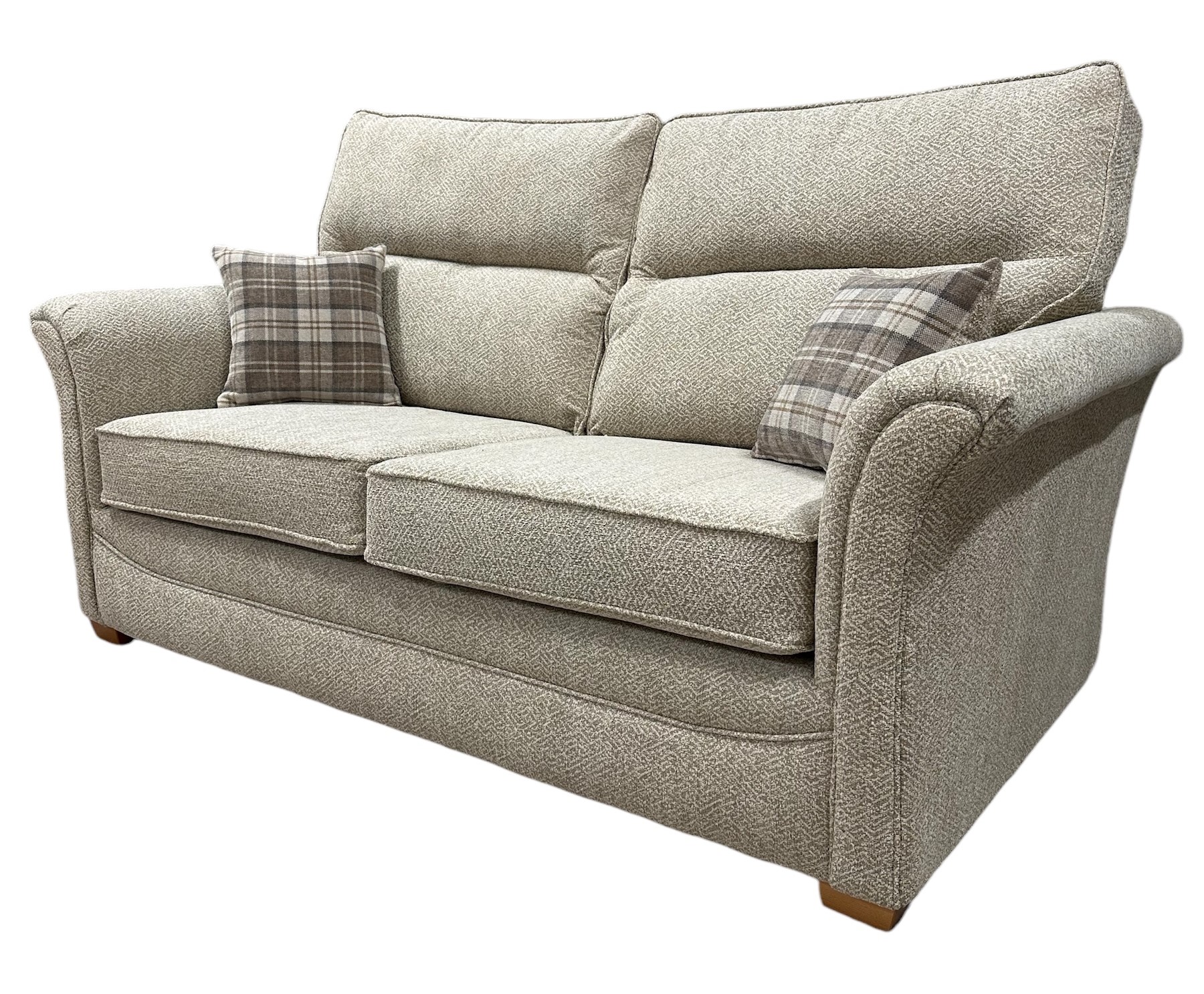 The best selling Royal suite finished in the Nelson fabric collection with Royal London beige scatter cushions.